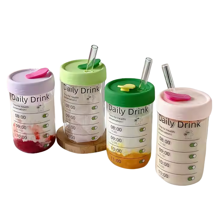 Glass Juice Beverage Cups with Straw