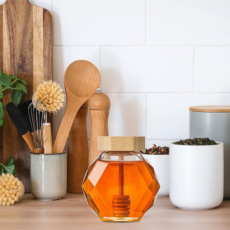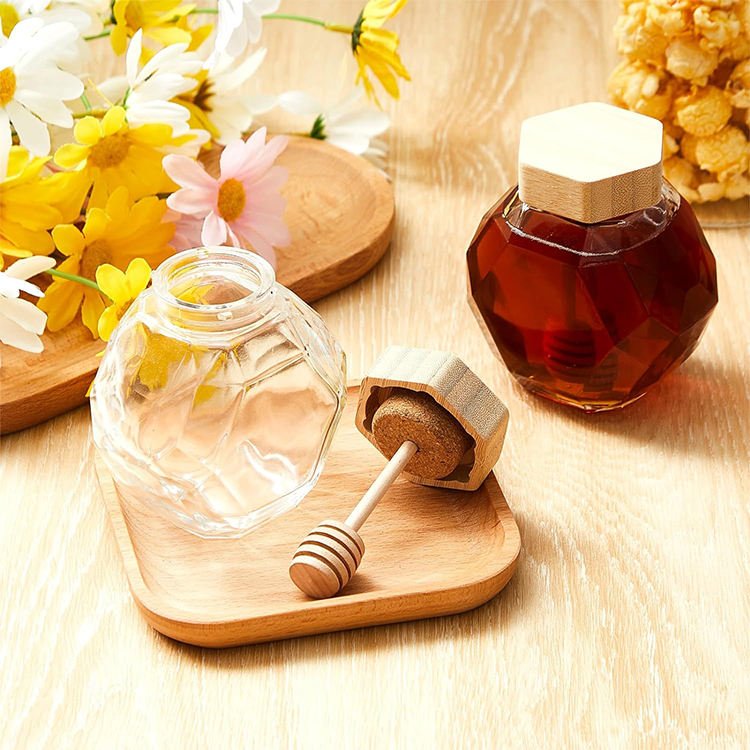 Product Name: Factory wholesale 200ml hexagon-shaped honey empty glass jars with wooden sticks