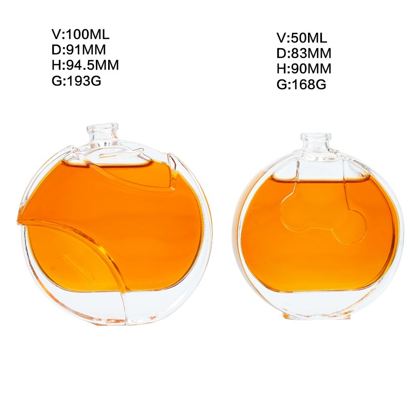 Product Name: Hot Sale Custom Round Perfume Bottle 50ml 100ml Unique Luxury Perfume Glass Bottle With Cap