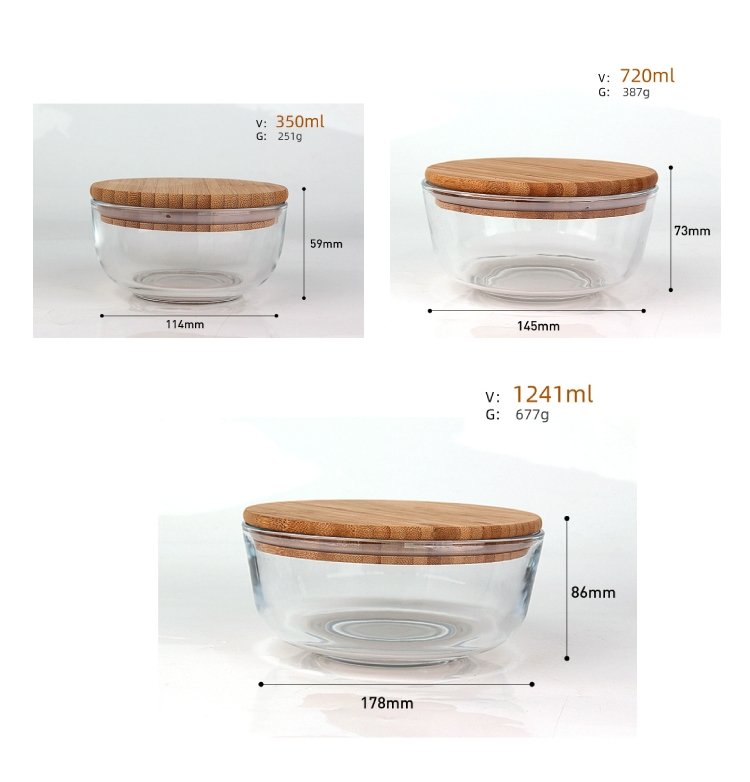 Product Name: 350ml 720ml 1240ml lunch box Microwave oven-safe glass food containers Bowl set with bamboo lid