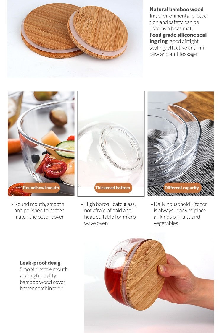 Materials: High borosilicate glass+Natural Bamboo lid